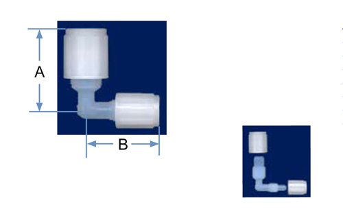| PFA Part No. | PVDF Part No. | Tube O.D. | Tube O.D. | Orifice | A | B |