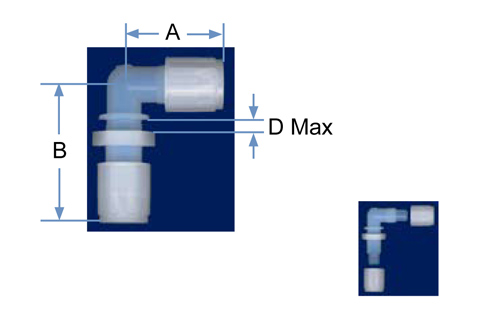 | PFA Part No. | Tube O.D. | Orifice | A | B | C | D (Max) | Hex | Minimum Pane Hole Diameter |