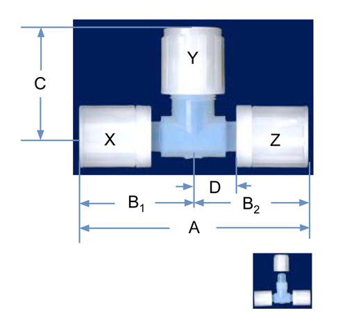 | PFA Part No. | X | Y | Z | Orifice | A | B1 | B2 | C |